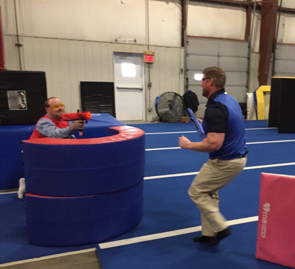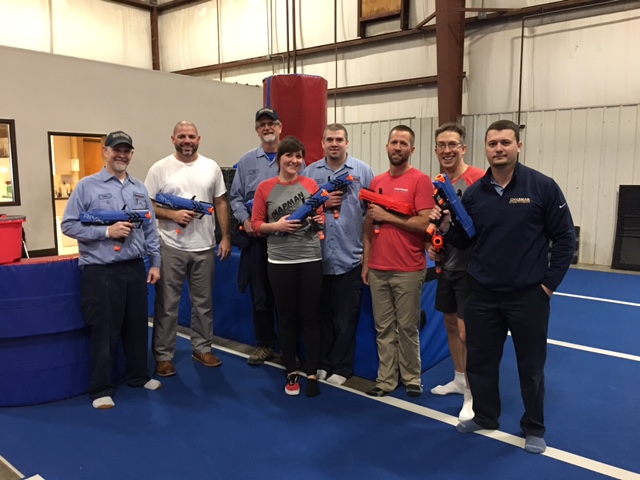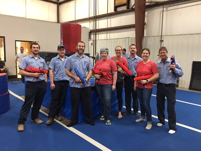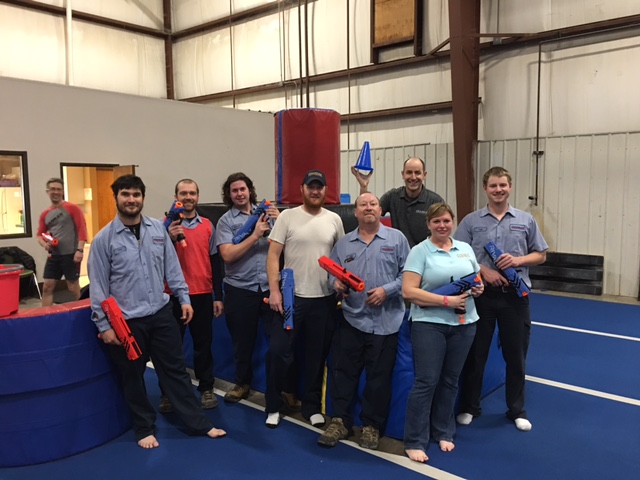To get a little extra fun into our day, the owners of Chapman surprised everyone by taking us all to Tiger Academy of Gymnastics and having a NERF BATTLE. This was a great time for everyone! The teams were divided beforehand and each team captain led their group to wins, ties, losses, and a whole lot of fun!