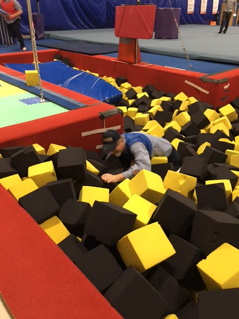 Jim struggling through the foam pit