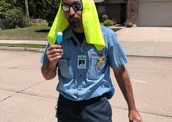 Last week the highs in Mid-Missouri topped out in the upper 90’s, with heat indexes reaching up to 103! With all this heat it’s important to make sure that you stay hydrated – in our office we ensure our hardworking technicians always have cool water and Gatorade they can grab on their way out in the mornings. We also have cooling towels they can take with them!